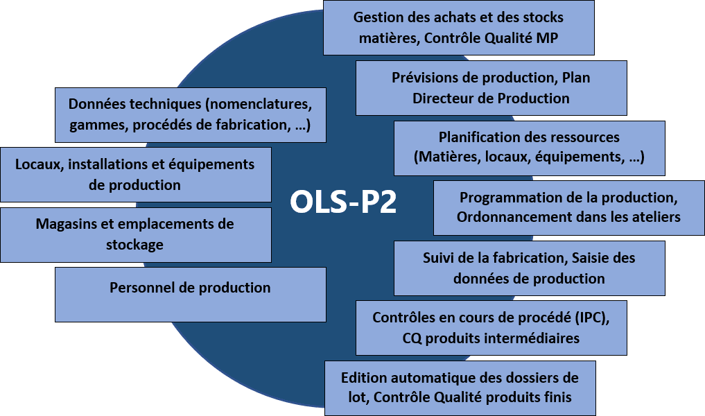 OLS-P2, logiciel de gestion de la production et de la logistique, spécialement conçu pour l’industrie pharmaceutique est en conformité parfaite avec les BPF et prend en compte les aspects économiques et organisationnels attendus de toute production. Et nous citerons à titre d’exemple :